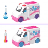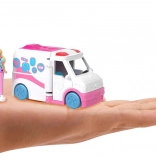 The mini vehicle unfolds to reveal a tiny clinic with a seat and bench — ready for instant rescue action and realistic scenes.
