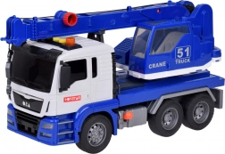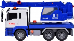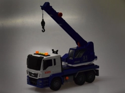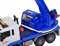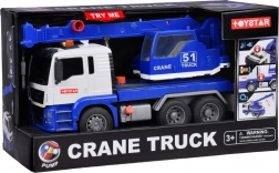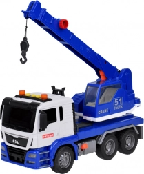 This quality crane truck is designed for young builders and offers many realistic features. It is equipped with a movable arm with a hook, which allows lifting and carrying objects, and sound effects that mimic engine starting, reversing, and a horn.