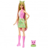 A doll with long pink‑green hair, a cat ear headband, and mix-and-match outfits. Includes a scented kitten with a little bed.