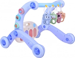 The 3-in-1 educational set grows with your child: from comfy play on the soft mat with adorable animals, to exploring sounds on the piano with melodies and lights, and on to first steps with the stable push walker. Colorful hanging toys encourage grasping and hand–eye coordination, while the shape sorter with pastel blocks develops logic and patience.