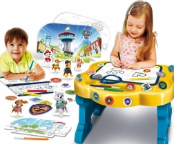 Discover the PAW Patrol creative writing desk for children aged 3 and up, combining fun and learning. It includes educational games, markers, coloring sheets, and other activities to develop imagination and fine motor skills.