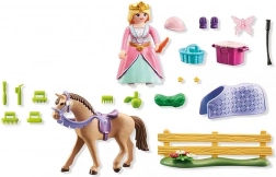 Discover the magic of creative play with the PLAYMOBIL Princess Magic – Princess with Horse set. The elegant princess with a removable skirt sits comfortably in the saddle and, after the ride, rewards her horse with a carrot and a cozy soft blanket. The bridle can be decorated with sparkling bows and stars, and there are brushes and grooming tools as well as a fence and accessories for imaginative stories.