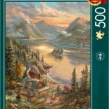 Enjoy relaxation with a high-quality SCHMIDT puzzle featuring a tranquil lake motif. Ideal for unwinding and practicing concentration. This 500-piece jigsaw with a completed size of approx. 34.1 × 48.1 cm offers a pleasant challenge and precise craftsmanship of the pieces.