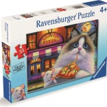 A great puzzle for little lovers of animals and food! Ravensburger offers a cheerful motif of a cat with pizza made up of 35 pieces for children aged 4+, supporting the development of fine motor skills and patience.