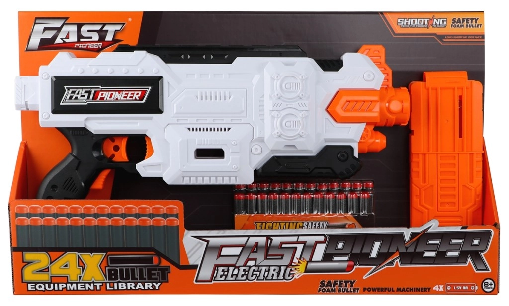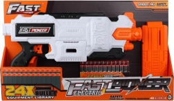 Battery-powered Speed Blaster with a range of 10–15 meters is the perfect choice for action-packed games! This blaster offers not only a great range but also rapid fire, making it an ideal weapon for any play adventure.