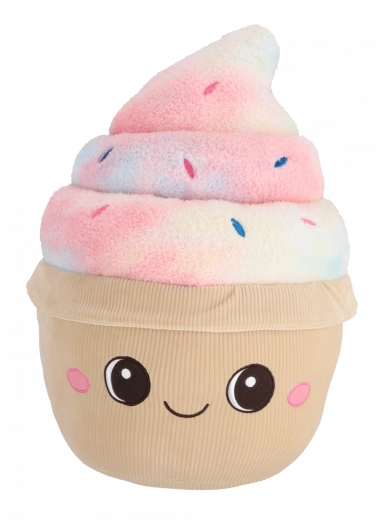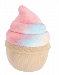 This fluffy cupcake/soft-serve-shaped plush stands out with gentle pastel colors, a happy smile, and quality craftsmanship. It’s large enough (43 cm) to be cozy for cuddling while also stylish as a decor piece for a kids’ room, bedroom, or playroom.