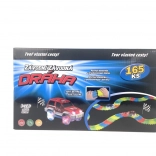 The set also includes a car with LED lighting (9.5 × 5.5 cm), adding dynamism and thrills to the game. Both the track and the car light up in the dark, providing an incredible visual experience.