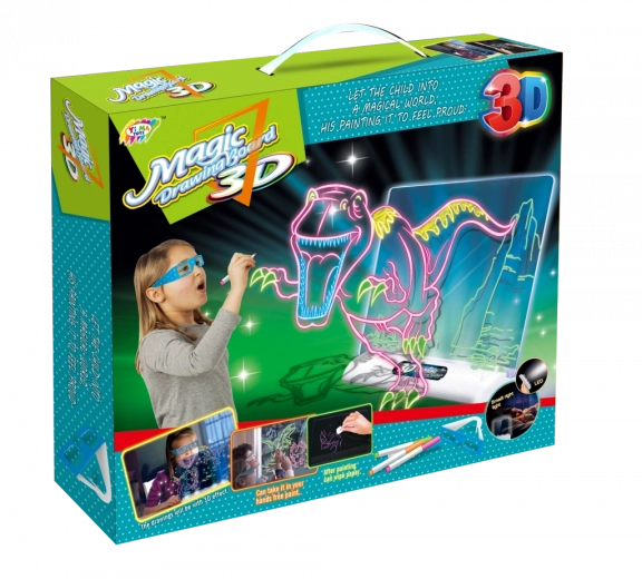 This 3D drawing board allows children to see their drawings in a new dimension. Simply draw a picture on the included board, insert it into the reader, and put on the 3D glasses. The result? A three-dimensional masterpiece that will amaze!