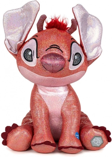 Interactive plush Leroy from the Disney 100 Anniversary collection with a sparkling appearance and sound effects. The plush character Stitch provides fun sound effects when you press the left hand.