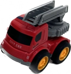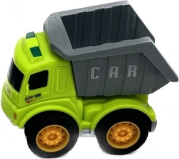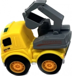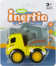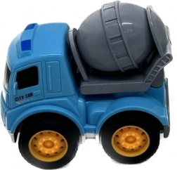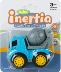 Plastic mini construction vehicle for children aged 3, available in 4 different designs — cement mixer, dump truck, loader, and tow truck with winch. Thanks to the push-and-go inertia drive, just nudge it and the vehicle sets off, supporting creative play and the development of fine motor skills. Compact size, safe build, and fun for little builders.