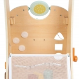 The walker also includes gears, flip tiles, a shape sorter with three different shapes, and a clock with movable hands for both fun and learning. A practical mesh on the back of the walker provides storage space for toys. Wheels with rubber rings ensure a quiet and safe ride.