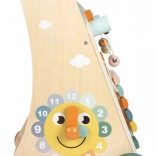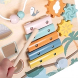With a wooden xylophone, gears, and a bead maze, your child will be entertained while developing fine motor skills.