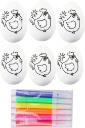- All-in-one pack – 6 eggs + 6 colored markers (yellow, orange, red, blue, pink, green).