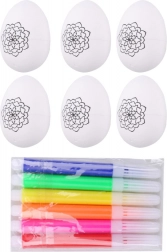 This fun set provides everything children need to create original Easter eggs. The eggs have a smooth white surface ready for painting, outlining, and detailing. With the included markers in six colors, kids can start creating right away and grow their creativity.