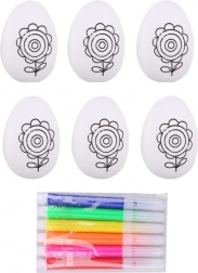 The set includes everything you need: 6 eggs in a practical size and 6 markers in vibrant colors. Crafting supports hand–eye coordination, dexterity, and creativity in children and makes a great Easter gift.