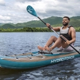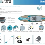 Enjoy an active day on the water with the versatile HYDRO-FORCE Freesoul Elite inflatable paddleboard. Its stable shape, high load capacity, and the option to convert it into a kayak make this board a versatile companion for lakes and the sea. The package includes everything you need—from a paddle and pump to a seat with backrest and a leash. Thanks to the drop-stitch material and Tritech reinforcements, the board is strong, durable, and stable, yet light and easy to carry. Load capacity 150 kg, anti-slip EVA deck pad, and three removable fins for better tracking.