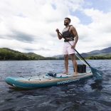 The HYDRO-FORCE Freesoul Elite 2-in-1 inflatable SUP combines the comfort of a paddleboard with the practicality of a kayak. The wide shape provides confidence for beginners and advanced riders alike, and the 150 kg load capacity lets you bring gear for longer trips. Thanks to the robust FortiFiber drop-stitch construction and longitudinal Tritech reinforcement, you get stiffness comparable to a hard board, with the advantage of easy transport in a backpack.