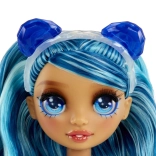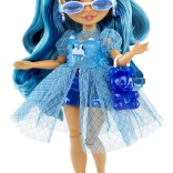 Skyler has fully articulated limbs for realistic poses and long, brushable hair for styling. A fashion outfit with blue accents underscores her unique look.