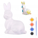 The kit includes one styrofoam bunny measuring 14 x 9.5 cm. The set also comes with four colors in intense shades and a brush, which allow for easy and precise painting.