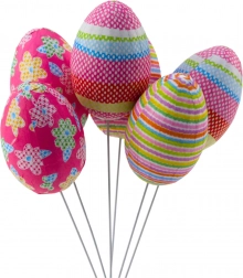 Our Easter decorative eggs on sticks are a perfect choice for creating a unique, festive decoration. The set includes 2 eggs with dots, 2 with stripes, and 2 with a floral motif. The eggs are made from lightweight and durable styrofoam, and thanks to the flexible wires, you can easily place them in various decorations.