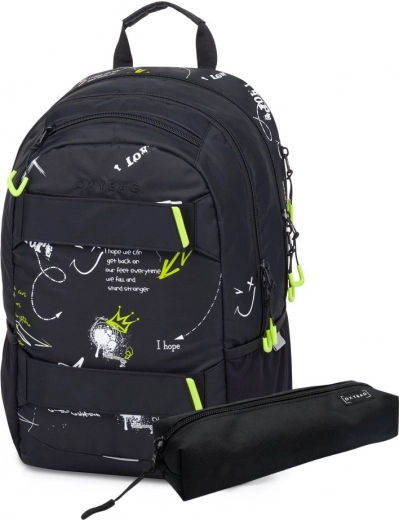 The OXY Sport Graffiti backpack is an excellent choice for both students and adults. Ergonomically shaped back and adjustable padded straps ensure comfortable carrying all day long. A practical chest strap contributes to stability. Two main compartments and a smaller front pocket with sturdy zippers provide enough space for textbooks and personal items.