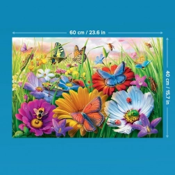 Immerse yourself in a colorful meadow full of insects and enjoy relaxing moments with a puzzle that brings generations together. Thanks to the larger pieces, assembly is comfortable, quick, and clear, so everyone can enjoy the image – from kids to grandparents.