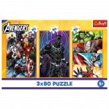Puzzle 3x80 Action Days feature amazing scenes with beloved Avengers superheroes like Captain America, Black Panther, Thor, Iron Man, and Hulk. Each assembled puzzle creates an image with dimensions of 275x180 mm.