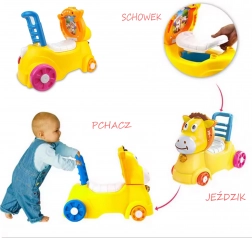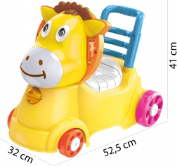 The adorable yellow little donkey motivates children to move, improves balance and coordination, and fosters independence. Thanks to the practical handle and stable backrest, it suits both first steps and safe scooting and riding around the home.