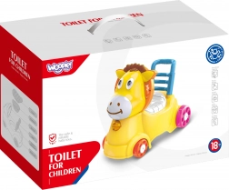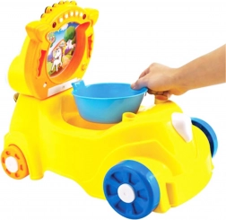 The seat can be lifted to access a hidden removable container that works as a potty or as a stash for small items and toys. Light and sound effects add fun to every ride and make potty training more enjoyable.