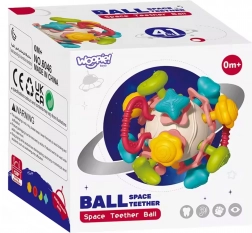Looking for a lightweight, safe toy from birth? The WOOPIE 4-in-1 sensory ball is designed for the tiniest hands. Rotating rings with beads create auditory stimuli, while varied textures and colors support visual and tactile perception. The soft rubber handles also provide comfort during teething.