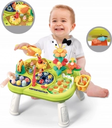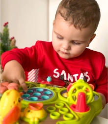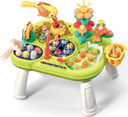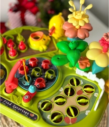 The interactive multi-table WOOPIE brings kids fun and development in one. Thanks to 8 activities in 1, it offers long hours of discovery: fishing game, whack-a-worm with a hammer, gardening with flowers and carrots, and playing with a bird while pulling out a worm. It supports fine motor skills, patience, concentration, and hand–eye coordination.