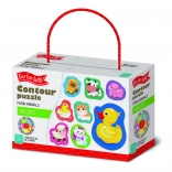Fun outline puzzles for the little ones featuring farm animals. The set includes 8 separate pictures with 2 pieces each – ideal for a first puzzle experience and for developing fine motor skills. Simple two-piece puzzles, cute farm animals, and learning through play will delight every small child.