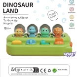The interactive pop-up dinosaurs by WOOPIE combine play and learning. Children activate colorful dinosaur figures using different mechanisms — a button, switch, or turning dial — and watch the figures pop up. This activity supports fine motor skills, logical thinking, and sensory perception.