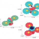 A set of 3 interactive spinner toys from the WOOPIE brand, colorful and a great choice for your child. Each toy has a different number of arms: 2, 3, or 4 arms. You can attach them to smooth surfaces, expanding play possibilities. Made from safe materials, also ideal as a teether for the youngest. Various bumps and indentations effectively stimulate the senses and your child's motor skills.