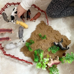 The toy set encourages children to learn to recognize and name different types of animals through fun activities.