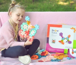 Construction Blocks Waffles by brand WOOPIE will captivate and entertain your child. Their colorful elements resemble snowflakes. Thanks to easy connection and stacking, they can create fascinating three-dimensional constructions. The blocks include holes that allow for angled connections, not just perpendicular.