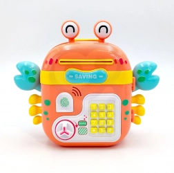 This colorful crab is more than just a money box—it’s an interactive safe, money box, and kids’ backpack in one. Children can store coins, bills, and little treasures, set their own password, and enjoy realistic elements like a button keypad, a pretend fingerprint scanner, and a turning knob to open.