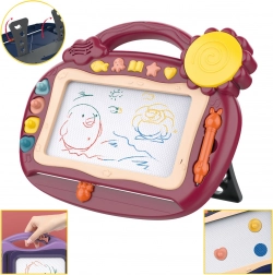 Thanks to the practical handle, the board is easy to take on trips or to preschool, and the fold-out legs ensure comfortable writing at a table. The set includes a magnetic pen and 4 stamps that motivate kids to create and improve their fine motor skills.