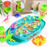 - 1× game board with cover and dinosaur slots, 2× launcher, 24× foam ball (yellow and orange), 16× colorful dinosaur figure, gift packaging