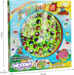 Turn on the pond, pick a rod, and go fishing! The play area rotates smoothly and the fish regularly surface when they open their mouths. Your task is to hook a fish at the right moment and guide it into the basket. Simple rules ensure a quick start and lots of laughs.