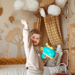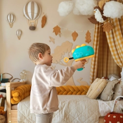 A fun game with a cute dinosaur from WOOPIE brings safe shooting with soft balls at a colorful scoring target. Just aim, pull the trigger, and hit 100 points! A lightweight blaster, hook-and-loop for safety, and easy operation guarantee lots of laughs, training of coordination, and friendly competition at home or in the garden.