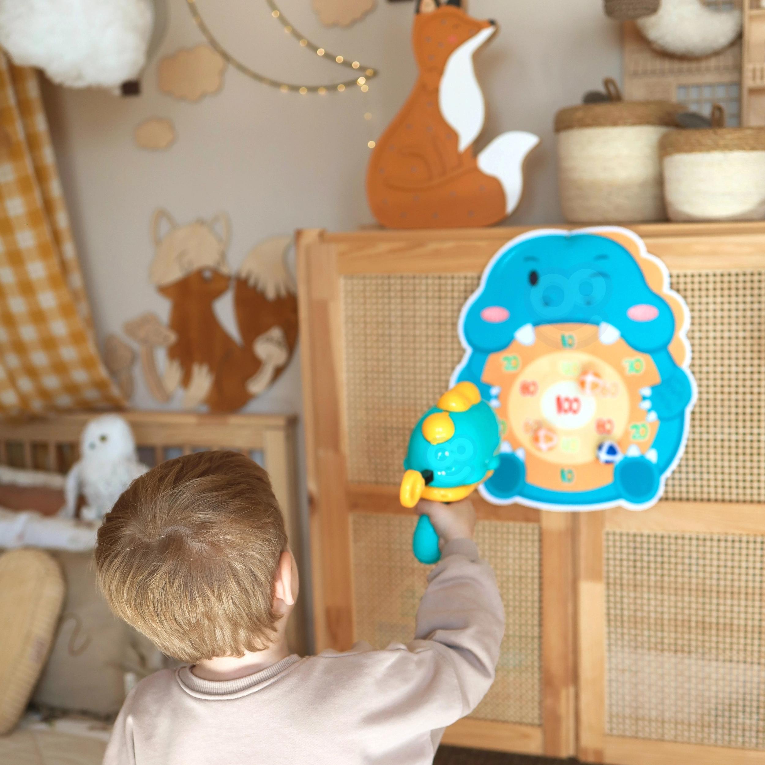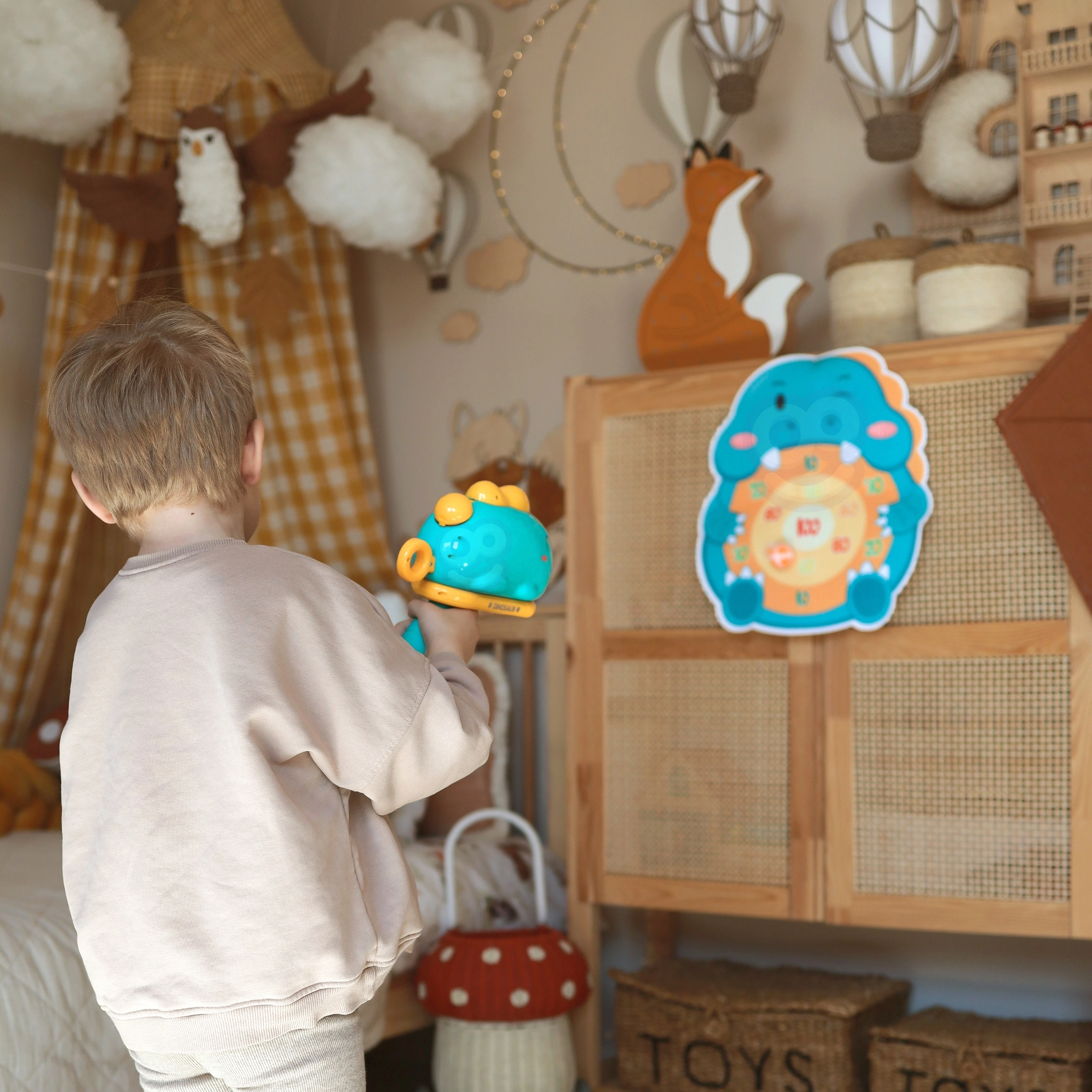 Turn any room into a fun play area with a dinosaur target and blaster that shoots soft hook-and-loop balls. The colorful target with clearly marked scoring encourages precise hits, while the blaster’s lightweight, ergonomic design ensures a comfortable grip even for small hands.