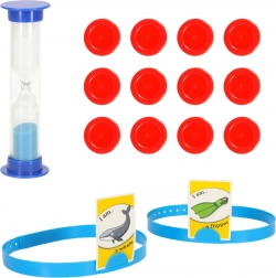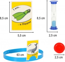 Durable headbands hold the card comfortably on the head, the sand timer sets the pace for the rounds, and tokens help keep score. An ideal set for a brisk and exciting two-player game.