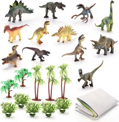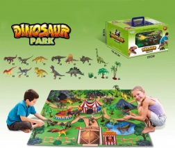 - 12 dinosaur figures, 10 plant/tree figures, soft mat, carry case