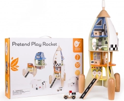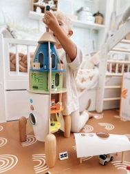 Discover a world of imagination with this CLASSIC WORLD wooden rocket – a large, colorful, and thoughtfully designed toy for children aged 3 and up. It features a multi-level space station with rooms that foster creativity, fine motor skills, and learning colors and shapes. The sturdy wooden build, plastic elements, and non-toxic varnish ensure safe and durable play.