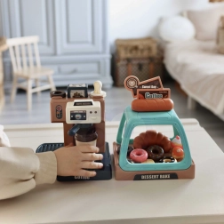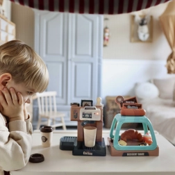 The WOOPIE play set turns a child's room into a small café. Kids will enjoy realistic coffee making with a water flow function, light and sound effects, and rich accessories. The coffee machine and display case can be connected or used separately, encouraging creative role play and the development of social skills.
