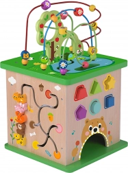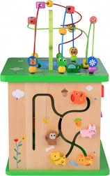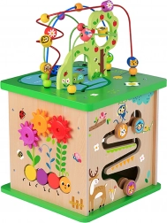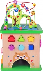 Discover the versatile wooden activity cube from TOOKY TOY, offering 5 play activities for children from 18 months. Kids learn shapes, colors, and animals in a fun way while developing fine motor skills, hand–eye coordination, and logical thinking. Safe non-toxic paints and quality wooden craftsmanship ensure both fun and safety during play.
