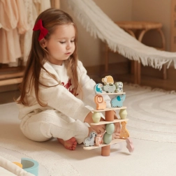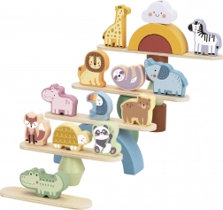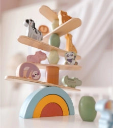 The toy offers three levels of difficulty, adapted to the child's age, and is ideal for children from 18 months. While playing, children improve balance, develop precise maneuvering abilities, and build impressive balancing towers with animals.