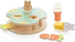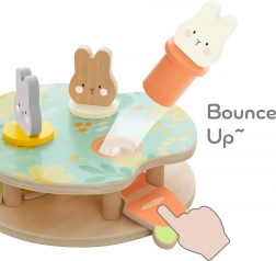 The Popping Bunnies game is great for developing children's color and shape differentiation skills. Your task is to place three cute bunnies into the corresponding holes and match them according to color and shape. When you press the carrot pieces, the bunnies pop out! The toy is made from high-quality wood and has no sharp edges, ensuring it is safe for children.