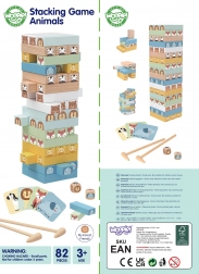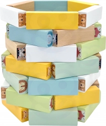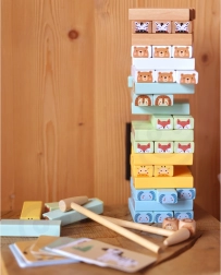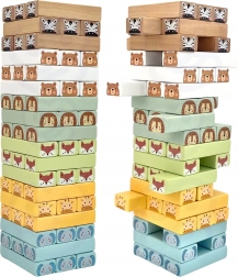 The Wooden Game Wobbling Tower by WOOPRIE is a great choice for developing your children's motor skills and having fun! The set includes 82 pieces made of durable wood with pastel colors and animal stickers. Great for strategic thinking and concentration.